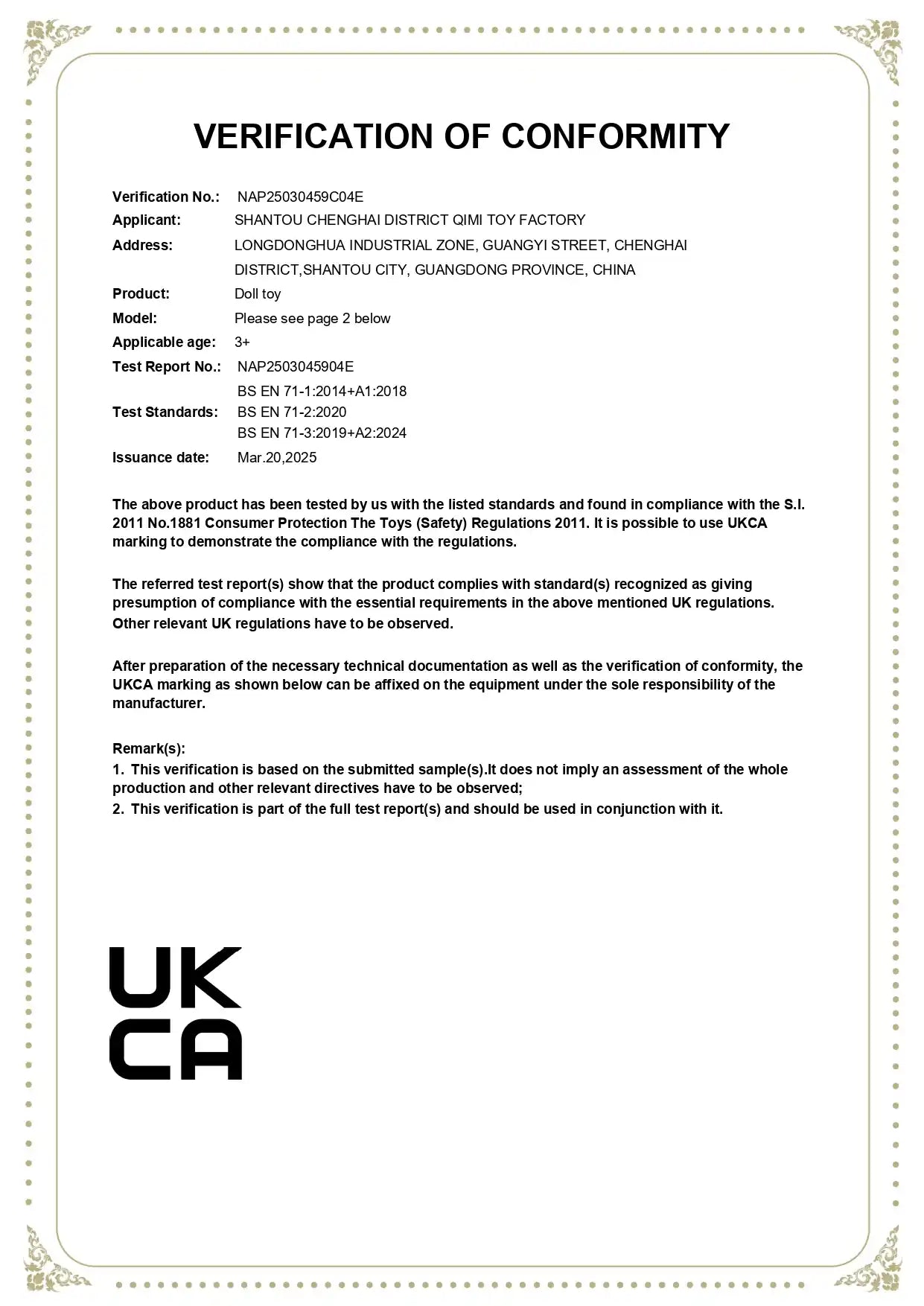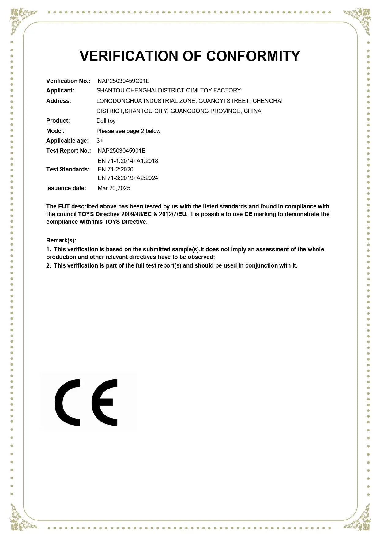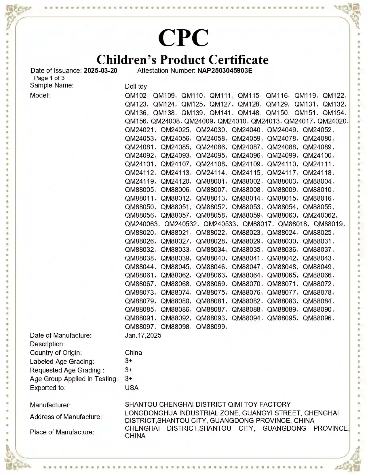 Doll Material Safety Certification