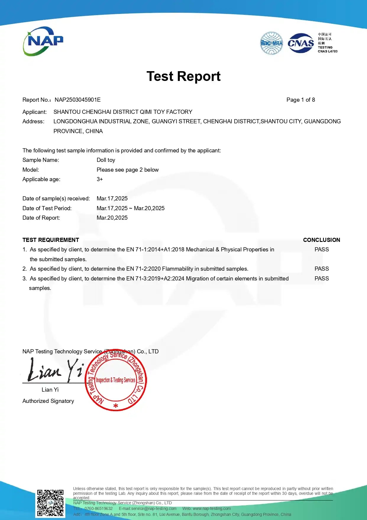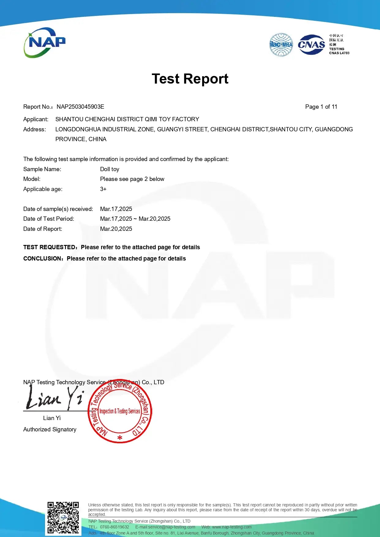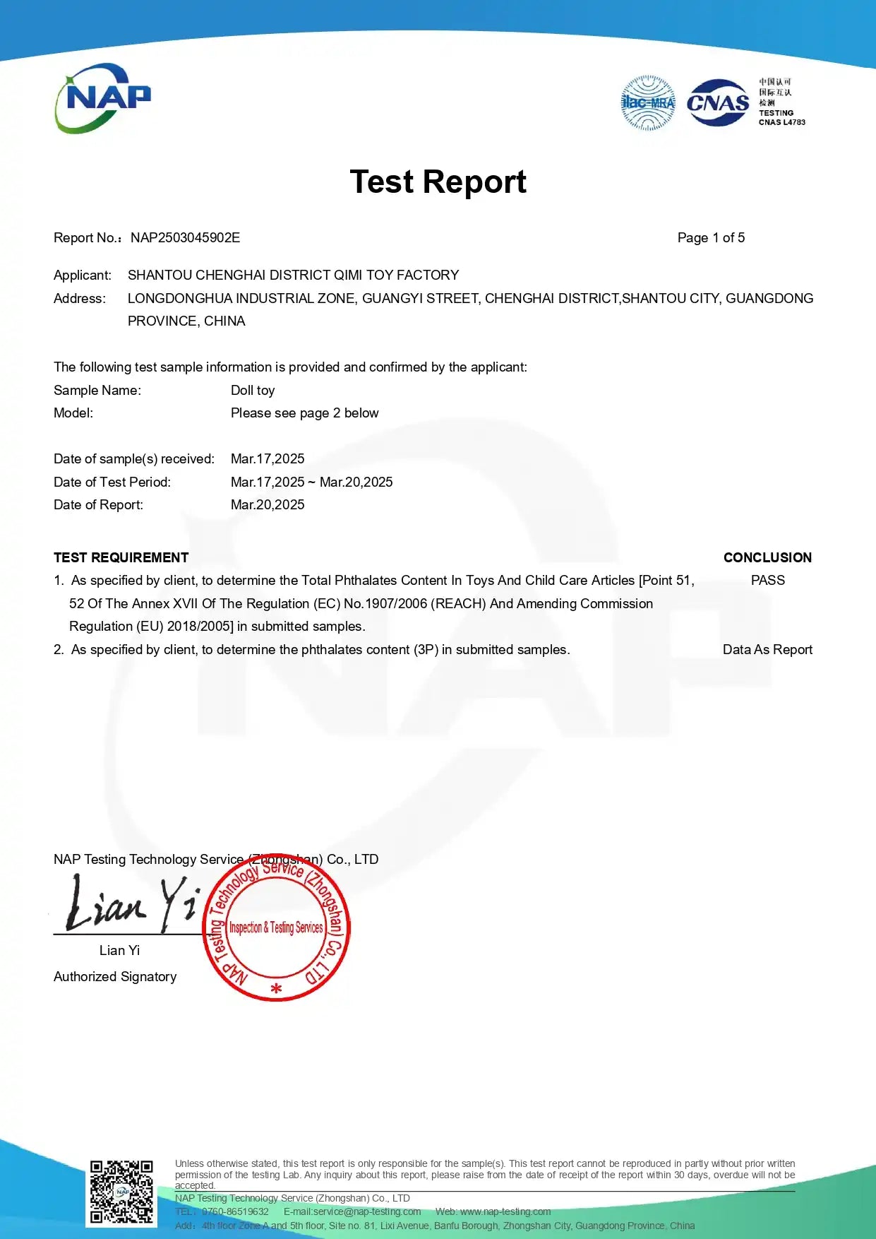 Doll Material Safety Certification